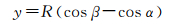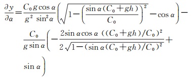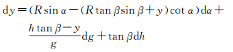 式中,g=ΔC/h为声速梯度。显然,若将β、R视为过程变量,可将水平位移表示为α、g、h的函数,即