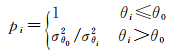 式中, θ0为单位权观测对应的入射角阈值,即当入射角小于等于θ0时,观测权设为1。结合文献[27]以及图 3,单位权入射角阈值的设定范围可选为40°~50°;σθi2为入射角为θi时观测值的观测方差。