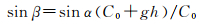 式中, α为入射角;β为层内的出射角度;R=-C0/(gsinα),为声线传播的曲率半径;C0表示入射声速。α与β满足Snell方程,即