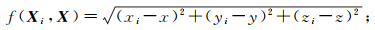 2 顾及入射角的权函数设计假设Ti(i=1, 2, …, n)时刻由GNSS和姿态测量给出船载声呐换能器的位置Xi=(xi, yi, zi),海底应答器待定坐标为X=(x, y, z),声呐信号传播时间为ti, 海底应答器定位观测模型为
