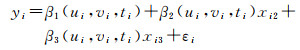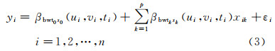 式中,xik是位于位置(ui, vi, ti)的第k个自变量;βbwtksk(ui, vi, ti)表示位置(ui, vi, ti)处基于特定空间带宽bwsk和时间带宽bwtk的第k个自变量的估计系数;εi是误差项;yi是因变量。