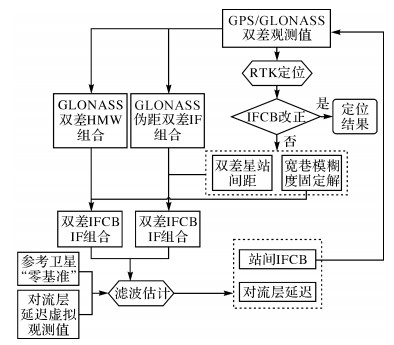 | 图 1 站间IFCB实时改正的RTK定位解算 Fig. 1 Real time inter-station IFCB correction algorithm in RTK |