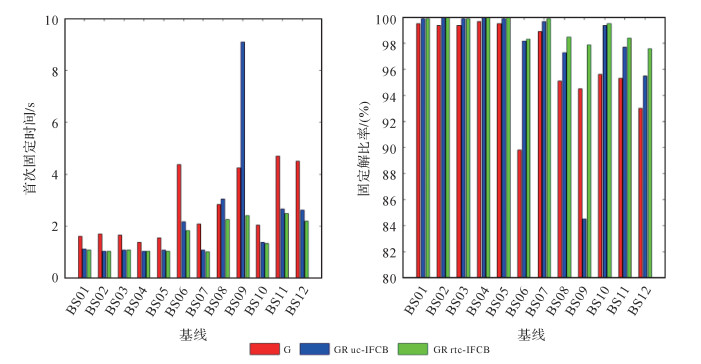 | 图 12 RTK定位首次获取固定解时间和固定解比率 Fig. 12 Time to first fixed and rates of RTK fixed solutions |