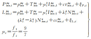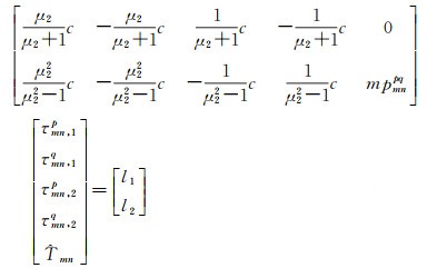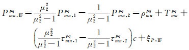 式中,P和L分别代表伪距和载波相位观测值,单位为m;ρ表示卫星到测站的几何距离;p和q为GLONASS卫星PRN,pq表示星间单差,q为参考星;m和n为基线测站编号,mn表示站间单差;T为对流层延迟;Imn, 1pq为第一频点上的双差电离层延迟;f1和f2为观测值频率;τ为IFCB,ι为IFPB,单位为s;λ为载波波长;N为整周模糊度;ξ为多路径和观测噪声;c为光速。GLONASS两个单差模糊度转化为一个双差和一个单差模糊度。由于GLONASS频分多址信号不同卫星的同一频段载波波长相差很小,在毫米级,即λip-λiq量级很小,单差模糊度可以直接取近似值引入观测量。