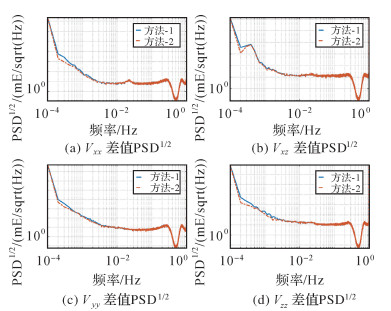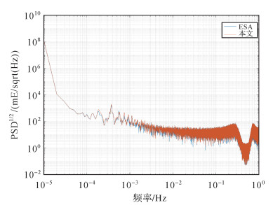 | 图 7 校准后引力梯度张量迹的PSD1/2 Fig. 7 PSD1/2 of calibrated gravity gradient trace |