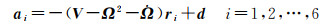 式中,i为加速度计编号;V是引力梯度;Ω与