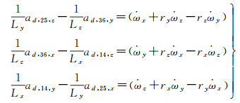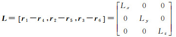 图 2是梯度仪中3对加速度计的特殊结构,根据卫星引力梯度测量原理,第i个加速度计测得的加速度值为