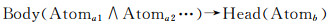 3.1 SWRL规则SWRL由实现(Imp)、原子(Atom)、变量(Variable)和内置组件(Built-In)组成(图 6),可根据简单概念定义复杂关系,扩展知识表达能力[34]。其中Imp是规则的基本单元,Atom是规则的最小元素单位,Variable记录Atom使用的变量,Built-In封装Atom的逻辑关系。本文根据式(5)[35]设计SWRL规则,具体解释为:若前件(Body)的原子全为真,则后件(Head)的推理结果也为真。