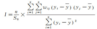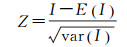 利用莫兰指数(Moran’s I)评估各个分区内的PM2.5监测站的空间相关性,以下分别为全局莫兰指数I和全局莫兰检验数Z的计算公式