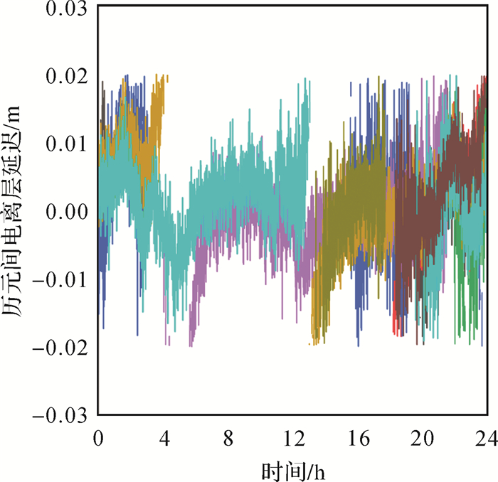 | 图 1 2021年4月18日30 s采样的历元间电离层延迟 Fig. 1 Between-epoch ionospheric delay for the 30 s sampling on April 18, 2021 |