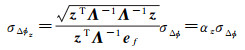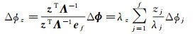 为不失一般性,令任意f个频率的组合系数为z=[z1, z2, …, zf]T,则组合观测值Δϕz为