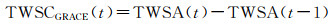 式中,P为降水量;E和R分别为区域蒸散量和径流量,当缺乏蒸散数据或实测径流时,通常利用水文模型进行估算[35];TWSCGRACE(t)为GRACE模型求得的t月份陆地水储量变化,其单位为km3/month;TWSA(t)和TWSA(t-1)分别为t和t-1月份陆地水储量异常,单位为km3。