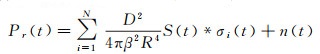 式中,N表示光斑范围内目标的个数; R是接收机到目标的距离; β为发射器波束宽度; D为接收器光学元件的光圈直径; S(t)是激光雷达系统贡献的部分,即为发射脉冲与接收器脉冲响应方程的卷积; σi(t)为第i个目标的散射特性描述函数; n(t)为噪声信号。激光雷达光斑覆盖区域的每个散射目标分别贡献出不同的波形分量,雷达最终接收到的回波可视为不同波形分量叠加的结果。通过对波形的分解,可以提取出每个波形的振幅、脉冲宽度和时间、峰值位置、峰值之间的距离以及后向散射截面等信息[53-54]。