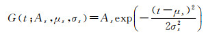 式中,G(t; As, μs, σs)为高斯函数; As是振幅; μs是发射脉冲到达水面的时刻; σs是标准差