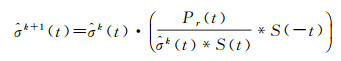 Richardson-Lucy算法最初是为图像恢复而设计的,通过迭代来解求反卷积问题。该反卷积方法基于贝叶斯定理,将激光雷达回波看作大小为1×L(L为回波波形的总时间长度)的影像,对给定时刻t,利用系统贡献项S(t)和接收的回波信号Pr(t),通过以下迭代计算σ(t)最可能的估计值