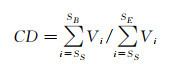 式中,CD为从GLAS波形中提取的比值能量参数,用于估测森林郁闭度; SS为信号开始位置; SE为信号结束位置; SB为冠层回波和地面回波的界限位置; Vi为第i帧对应的回波能量值。