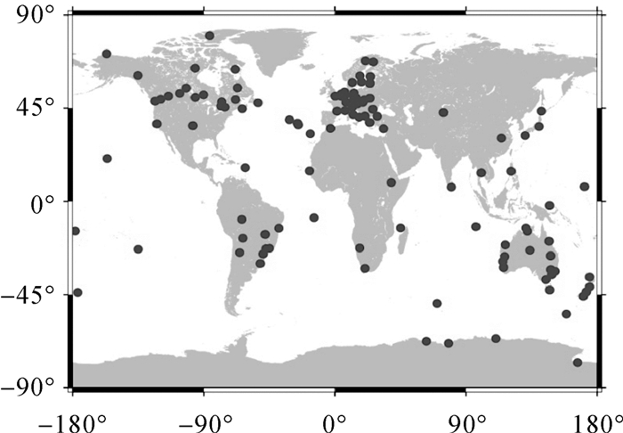 | 图 2 IGS实时全球跟踪站分布 Fig. 2 Global distribution of IGS real-time tracking stations |