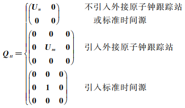 式中,Uk为k维单位阵,此时认为对应的钟稳定度一致。考虑对不同频标建模时,还可根据各时频源稳定度确定矩阵Uk[37]。结合式(4),当没有外接原子钟跟踪站或标准时间源引入时,|t|2Qtt=min对应卫星钟差重心基准;当引入外接原子钟跟踪站时,|t|2Qtt=min对应原子钟跟踪站拟稳基准;当引入标准时间源时,|t|2Qtt=min将系统时间基准溯源至该标准时间。此时卫星钟差不再是“真实”钟差,而受时间基准t0影响