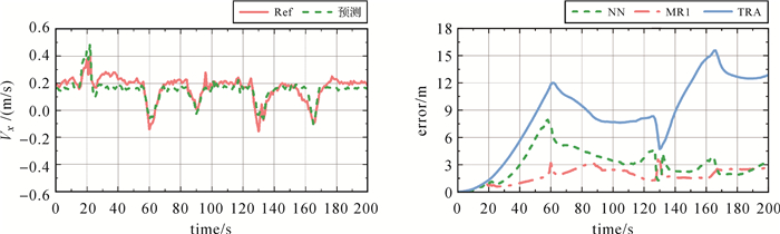 | 图 10 深度学习模型预测的侧向速度及其水平定位误差序列 Fig. 10 Lateral velocity predicted by depth learning model and its horizontal positioning error sequence |