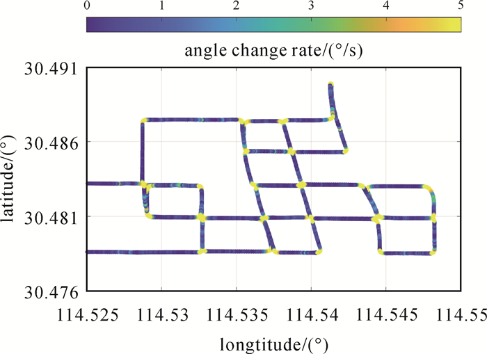 | 图 4 实测路段的航向角速度变化 Fig. 4 Change of heading angle velocity of measured trajectory |