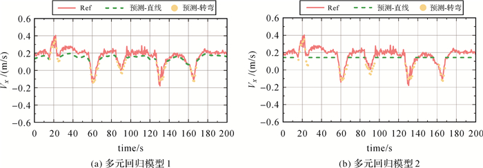 | 图 7 多元回归模型预测的侧向速度与参考速度对比 Fig. 7 Comparison between lateral predicted velocity of multivariate regression models and reference velocity |