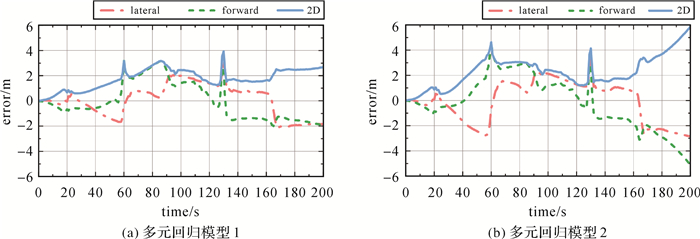 | 图 8 多元回归模型下NHC/SINS融合定位误差 Fig. 8 Positioning error of NHC/SINS fusion based on multivariate regression models |