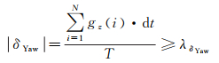 式中,δYaw是航向平均角速度;gz是陀螺Z轴直接输出的角速度;dt是采样时间间隔;T为窗口时长,T对应的N为窗口内的数据总量,判别阈值λδYaw可设置为1.5 deg/s。