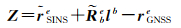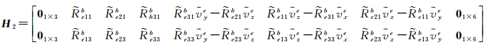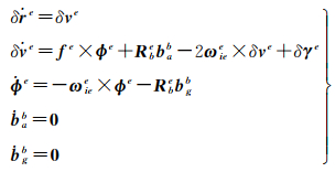 1.1 GNSS/SINS组合导航模型在GNSS/SINS组合导航系统中,选取机械编排的位置误差δre、速度误差δve、失准角ϕe,以及加计零偏bab与陀螺零偏bgb构建状态向量,即