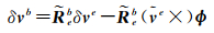 式中,Rbe是b系到e系的旋转矩阵;fb是b系下的加计输出;γe是地球重力项;ωiee是地球自转项。