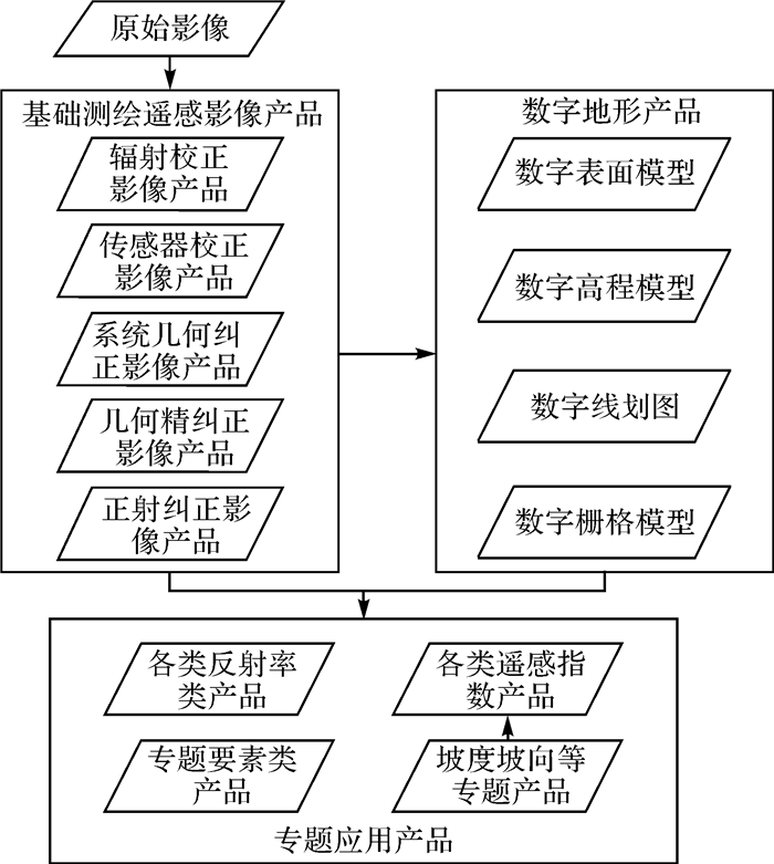 | 图 3 光学测绘卫星产品间相互关系 Fig. 3 Diagram of data products of the optical surveying and mapping satellite |