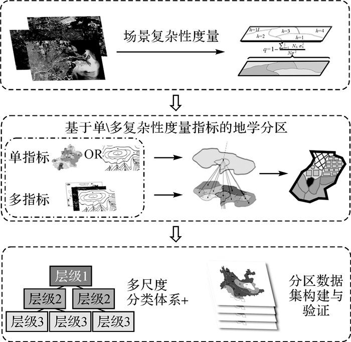 | 图 2 面向遥感智能解译的复杂场景地学分区研究总体流程 Fig. 2 Flowchart of geoscience zoning of complex scenes for remote sensing intelligent interpretation |