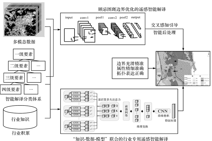 3.3 复杂地表要素精细尺度智能解译模型与方法遥感解译进入3.0的智能时代,需突破遥感智能解译对多模态数据和知识的综合利用,以适应行业应用的复杂场景和精细尺度需求,实现专业级的地理制图的目标(图 4)。