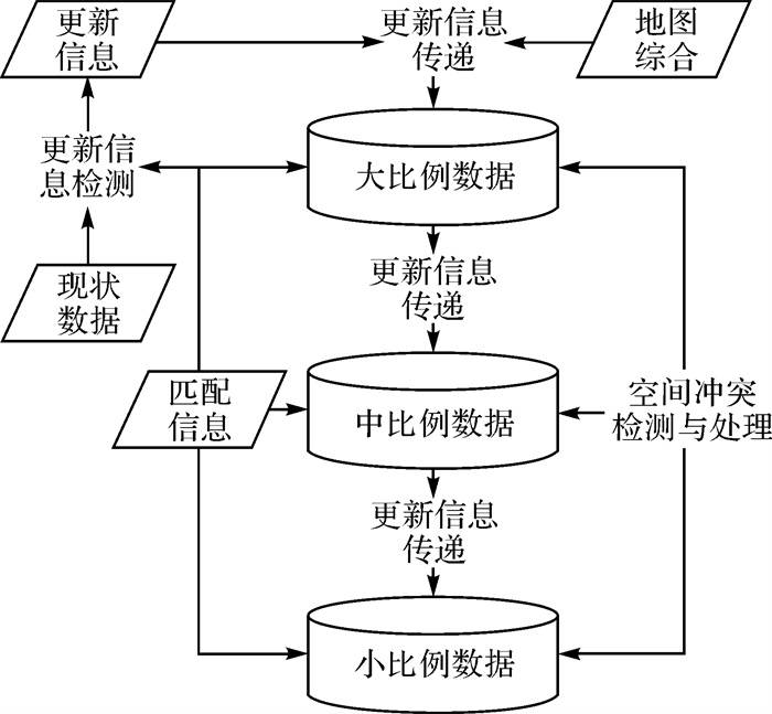 | 图 1 多尺度空间数据更新框架 Fig. 1 The framework of multi-scale spatial data updating |