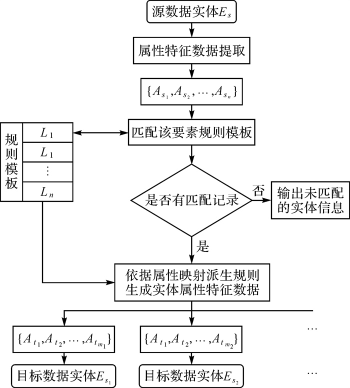 因此,属性特征项的语义一致性处理要解决两个问题,一是属性语义消歧,二是属性数据一致性表达。对于属性语义消歧,要解决由认知和应用差异引起的属性项差异,为新数据集构建新的属性项并进行属性语义转换。通常在分析属性项含义的基础上匹配属性项,再通过转换规则或映射关系实现属性语义一致性处理。如文献[58]基于数据属性和数据特征制定产生式规则,对属性转换规则设计了模板化表达方法,文献[66—67]设计了程序控制的转换方法。基于规则的方法虽然更为灵活,但是对程序依赖较大,稳定性不够高。因此实践中通常构建外部文件进行属性字段的映射,如文献[68—69]使用外部属性转换控制表进行语义转换,使得转换过程脱离了对程序的依赖。对于属性数据一致性表达,主要是解决由数据模型差异引起的数据含义和存储类型差异,本质上是属性信息重构的问题,主要手段是属性字段的替换、更新和属性取值的统一[70],如强制转换字符型为整数型、统一小数位、标准化属性值区间等。