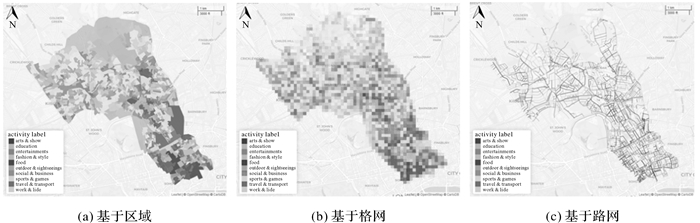 传统的ROI检测方法仅在平面空间中寻找聚合区,从而生成分布在2D笛卡尔空间中的ROI,如图 7(a)和(b)所示的基于小区域和网格的活动热点。相比之下,图 7(c)中基于网络的活动热点则能提供更加精细的表达和分析[35]。