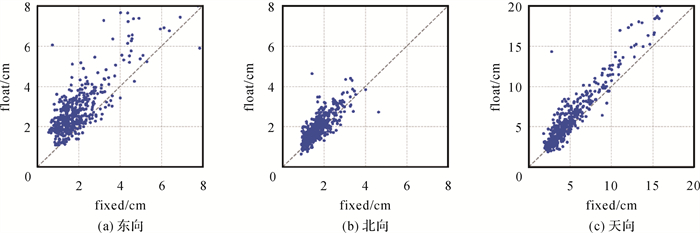 | 年积日 | 固定解/cm | 浮点解/cm | 精度提升/(%) | ||||||||