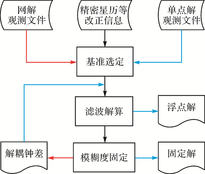 | 图 2 钟差解耦模型网解及单点解数据处理 Fig. 2 Network and single point data processing based on decoupled clock model |