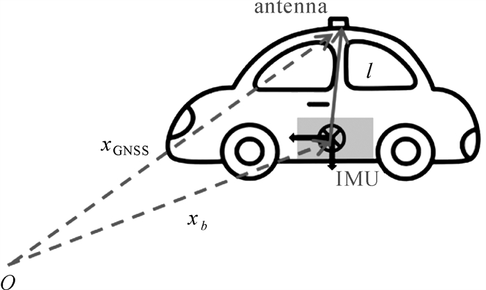 | 图 1 GNSS天线相位中心与IMU中心空间关系 Fig. 1 The spatial relationship between GNSS antenna phase center and IMU center |