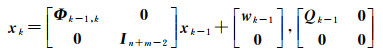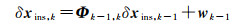 式中,转移矩阵Φk-1, k≈ I + Fk-1Δt,噪声wk-1的方差