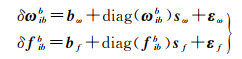 式中,r是从地心地固系的原点到xbe的几何距离;GM是地球引力常数[4, 17-18]。角速度和比力的测量误差表示为[4, 14-15]