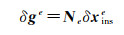 对其进行误差扰动,得到e系下的GNSS天线相位中心的坐标误差与IMU中心的坐标误差之间的关系