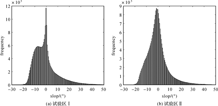| 图 6 两个试验区的地形坡度统计 Fig. 6 Statistics of terrain slope of the study sites |