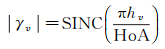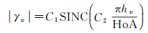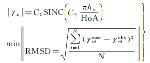 至此,当使用单基线观测数据时,纯体去相干γν仅为树高hv的函数关系,故可舍弃纯体去相干γν的相位信息,并代入HoA=2π/kz,其中HoA为测高模糊度(height of ambiguity),表征InSAR信号的测高敏感度。可得SINC函数模型表达式如下[17, 21]