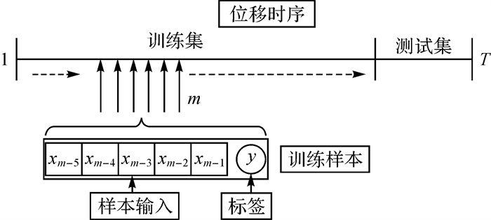 样本划分方式如图 10所示,训练样本从左至右滑动抽取。在本文试验中,每次抽取6个样本,前5个作为样本输入,第6个作为标签,测试集采用同样方式处理。为提高训练速度,采用批方式传递数据给模型,通常批大小为32[13]。试验中采用ReLU作为图卷积的激活函数,适应性动量估计(adaptive moment estimation, ADAM)[29]算法作为优化器,训练过程中的损失函数定义为