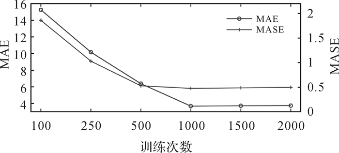 本文基于3个指标来评估模型的性能:①平均绝对误差(mean absolute error, MAE);②平均绝对比例误差(mean absolute scaled error, MASE);③均方根误差(root mean square error, RMSE)。
