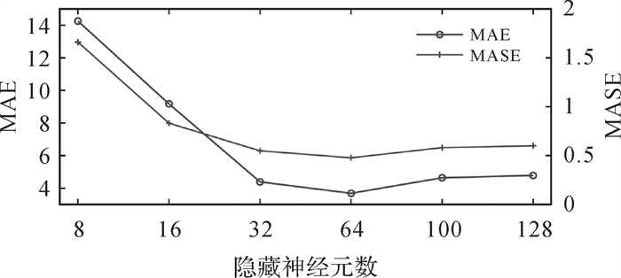 | 图 12 不同隐藏神经元个数的选择对预测性能的影响 Fig. 12 The influence of the selection of units on the prediction performance |