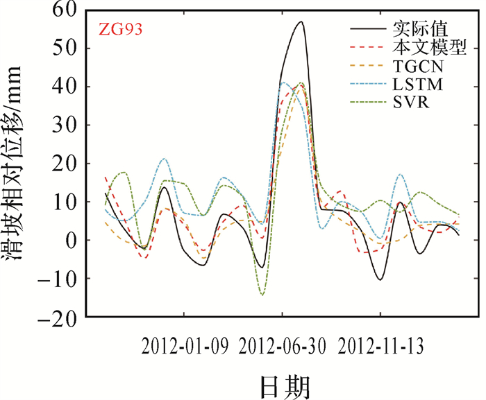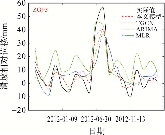 但是滑坡区域内的监测点受剖面和所在滑坡体位置的限制,所有监测点之间不只有空间度量关系,可能含有空间拓扑关系,需要更进一步试验和论证。除此之外,本文采用降雨和库水位两个因素,未考虑到两者的周期性的此消彼长变化特征对滑坡变形的影响,如何提取有效的周期特征,以实现更具解释力的滑坡预测结果也将是后续的研究重点。