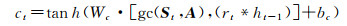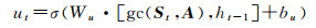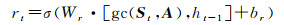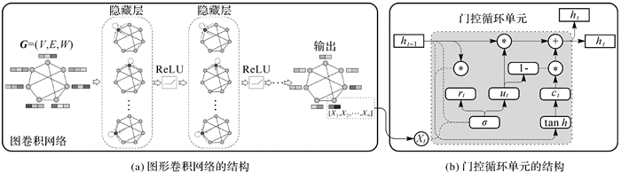 式中,gc(·)表示图卷积过程;σ(·)和tan h(·)为激活函数;参数W和b分别为权值和偏差;[·]表示向量相连;*为矩阵的卷积。