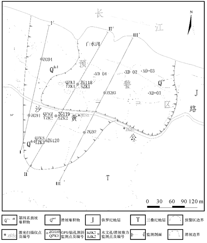 | 图 5 白水河滑坡监测点分布 Fig. 5 Baishuihe landslide monitoring points distribution |
