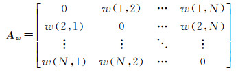 文献[13]分析了两监测点的距离与其时序变形数据的关系,并得出距离影响着空间相关性的结论。因此,笔者采用基于空间接近度的高斯相似度函数[20]w(i, j)=exp(-‖vi-vj‖2/2σ2)计算获取加权邻接矩阵。式中,w(i, j)为两监测点(vi, vj)连接边eij的权值,‖vi-vj‖2为两监测点(vi, vj)间的空间距离,σ为距离集合的标准差。计算所得加权邻接矩阵可表示为